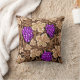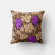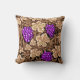 Throw pillow in a vintage William Morris tapestry pattern of deep violet purple grapes against a background of light to dark chocolate brown vines and leaves, digitally enhanced and coloured