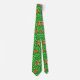 Tie in a William Morris Art Nouveau pattern of honeysuckle flowers against a background of vines and leaves - flowers in shades of coral orange and coral red, with emerald green leaves, against a pastel green background