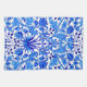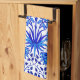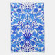 Hand towel in a vintage William Morris pattern of hyacinths, tulips and leaves, in shades of cobalt and cerulean blue, accented with dark navy, on a white background