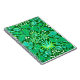 Notebook in a vintage William Morris pattern of hyacinths, tulips and leaves, in shades of emerald and jade green, accented with aqua and white, on a deep forest green background