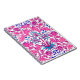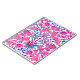 Notebook in a vintage William Morris pattern of hyacinths, tulips and leaves, in shades of fuchsia and soft pink, accented with dark blue and turquoise, on a white background