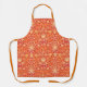 Apron in a vintage William Morris pattern of hyacinths, tulips and leaves, in shades of orange and saffron, accented with white, on a deep mandarin orange background
