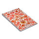 Notebook in a vintage William Morris pattern of hyacinths, tulips and leaves, in shades of light to deep mandarin orange and rust, accented with chocolate brown and mustard gold, on a light beige background