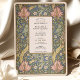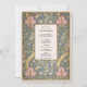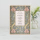 This stunning wedding invitation draws inspiration from the timeless designs of William Morris, featuring an intricate floral pattern with intertwining vines, delicate blossoms, and regal pink tulips against a rich blue background. The detailed botanical elements and symmetrical layout evoke the beauty of the Arts and Crafts movement, blending vintage charm with elegant sophistication. A refined gold-accented frame highlights the wedding details, creating a luxurious and timeless invitation. Perfect for vintage, garden, and classic-themed weddings, this invitation is a beautiful way to set the tone for your special day.