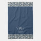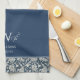 white william morris pattern,navy blue white floral,flowery swirling flower design,famous british english artist,traditional family surname flowers, "classic classy custom monogram", "personalised customised kitchen towel", "personal name swirly swirls", "elegant stylish sophisticated dishcloth", "vintage add your own text"