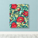 William Morris Inspired Red Flowers Pattern Canvas Print