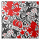 Ceramic tile in a vintage William Morris floral print of stylized lilies and Irises, digitally enhanced and colored, in shades of gray / grey and black foliage, with deep red flowers,on a white background