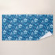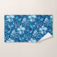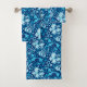 Towel set in a vintage William Morris floral print of stylised lilies and Irises, digitally enhanced and coloured, in shades of sky blue and white on a dark indigo blue background