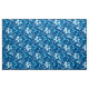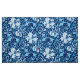 Fabric in a vintage William Morris floral print of stylised lilies and Irises, digitally enhanced and coloured, in shades of sky blue and white on a dark indigo blue background
