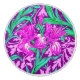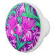 Ceramic knob in a William Morris, Art Nouveau, textile print of irises and leaves, digitally enhanced and coloured, in soft orchid and turquoise, on a deep amethyst purple background