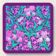 Coaster in a William Morris, Art Nouveau, textile print of irises and leaves, digitally enhanced and coloured, in soft orchid and turquoise, on a deep amethyst purple background