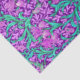 Tissue paper in a William Morris, Art Nouveau, textile print of irises and leaves, digitally enhanced and coloured, in soft orchid and turquoise, on a deep amethyst purple background