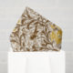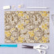 Tissue paper in a William Morris, Art Nouveau, textile print of irises and leaves, digitally enhanced and coloured, in deep and light mustard gold, with dark chocolate brown and tan leaves, on a light beige background