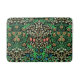 Bath mat in a vintage William Morris Jacobean floral wallpaper pattern of coral pink tulips, yellow daisies, blue violets, delicate white blossoms, and jade green foliage, on a black background, digitally enhanced and colored
