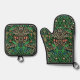 William Morris Jacobean Floral, Black Background Oven Mitt & Pot Holder Set