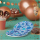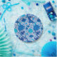 Paper plates in a William Morris, Art Nouveau, textile pattern - elegant, stylised, chrysanthemums, sunflowers and leaves, in shades of turquoise, cobalt, and navy blue, on a white background