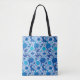 Tote bag in a William Morris, Art Nouveau, textile pattern - elegant, stylised, chrysanthemums, sunflowers and leaves, in shades of turquoise, cobalt, and navy blue, on a white background