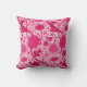 Throw pillow in a William Morris, Art Nouveau, textile pattern - elegant, stylised, chrysanthemums, sunflowers and leaves, in shades of light to deep fuchsia pink and burgundy, on a white background