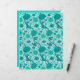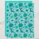 Paper in a William Morris, Jacobean floral, textile pattern - elegant, stylised, chrysanthemums, sunflowers and leaves, in shades of light to deep turquoise, teal and aqua, on a white background