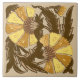 Ceramic tile in a vintage William Morris Jacobean floral tile pattern, digitally enhanced and coloured, in shades of tan, beige and dark chocolate brown, accented with deep mustard gold and mustard yellow