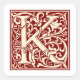 A decorative red antique Letter K monogram initial. Typography by English designer William Morris 1834-1896.