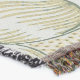 A quality printed throw has its advantages. This is a much finer weave throw than its loopier cousins, and though lighter, it is worth the investment for custom room accessorizing. The back is much prettier than the typical brown, and the fringe on the long sides very vivid, the selvage nicely done. Before photographing, I washed the throw in cold water, delicate, with a thicker woven throw the same size. On tumble dry low, this throw was dry in half the time as the other. This is a very practical quality if you use throws for furniture covers or to wrap up in frequently. The sleekness of the fabric makes it a great layer for accenting or protecting without the feeling of sitting on too much stuff. Perfect for napping or when you feel a light chill coming on. The color printing is beautiful and on this fabric, matched the design and color of my Photoshop image. This is an advantage for blending room fabrics and colors. The fringe on the short sides prints the colors from the design image and therefore varies from the side fringe. I streaked a white fractal line through the plaid pattern to give the illusion of weaving. This printed as crisp as an illusory thread, and put some white in the short side fringe, showing another advantage of print vs loomed- for artistic purposes, line lines, detail, and color integrity can be planned and preserved. My loomed throws have color limitations and more of a needlepoint texture. Print throws reproduce an exact image. The throw felt a little stiff straight out of the package, but this went away in the first delicate wash. Of course I searched the wash water for ink or bleeding and there was none.