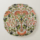 William Morris Lodden Flowers Foliage Green Pink Round Pillow - Lodden, the image embellishing this product was designed by William Morris in 1883 – was designed as a furnishing fabric – block-printed on cotton with multi-coloured decoration scrolling foliage flowers.