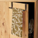 Kitchen towel in a William Morris Art Nouveau, textile pattern - oak leaves and branches in coffee brown, accented with dark chocolate brown, on a beige background