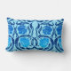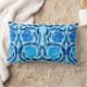 Lumbar pillow in a vintage William Morris textile pattern of stylised pimpernel flowers and leaves - flowers in a gradient of light to dark denim blue on a pastel sky blue background
