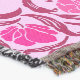 Throw blanket in a vintage William Morris textile pattern of stylised pimpernel flowers and leaves - flowers in a gradient of light to dark fuchsia pink, accented with burgundy, on a pastel pink background
