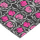 Table runner in a vintage William Morris textile pattern of stylised pimpernel flowers and leaves - flowers in a gradient of deep to light fuchsia pink, with light silver grey / grey leaves, on a black background