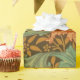 Beautiful ornate artistic vintage fine art design featuring orange single-stem flowers and green leaves against a floral background pattern.