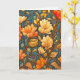 This William Morris style floral design features flowers in fall colours with a dark blue-green folliage background. Features a quilted texture pattern on this frameable greeting card.
