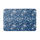 Bath mat in a vintage William Morris, Art Nouveau, floral print of stylized sunflowers, digitally enhanced and colored, in navy / indigo blue and white, accented with light denim blue