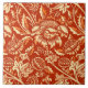 Ceramic tile in a vintage William Morris, Art Nouveau, floral print of stylised sunflowers, digitally enhanced and coloured, in deep mandarin and pastel orange, accented with coral orange