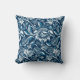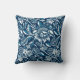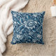 Throw pillow in a vintage William Morris, Art Nouveau, floral print of stylised sunflowers, digitally enhanced and coloured, in dark navy / indigo blue and white, accented with light denim blue