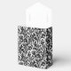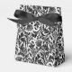 Favour box in a vintage William Morris damask pattern of thistle flowers and leaves, in black, on a white background, digitally enhanced and coloured