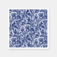 Paper napkins in a vintage William Morris damask pattern of thistle flowers and leaves, in deep cobalt blue, on a white background, digitally enhanced and coloured