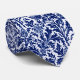 Tie in a vintage William Morris damask pattern of thistle flowers and leaves, in deep cobalt blue, on a white background, digitally enhanced and coloured