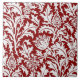 Ceramic tile in a vintage William Morris damask pattern of thistle flowers and leaves, in white, on a dark Chinese red background, digitally enhanced and coloured