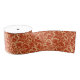 Ribbon in a vintage William Morris damask pattern of thistle flowers and leaves, in deep mandarin orange, on a pastel orange background