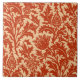 Ceramic tile in a vintage William Morris damask pattern of thistle flowers and leaves, in deep mandarin orange, on a pastel orange background, digitally enhanced and coloured