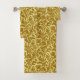 Towel set in a vintage William Morris damask pattern of thistle flowers and leaves, in deep mustard gold, on a light chamois yellow background, digitally enhanced and coloured
