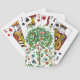 Cards in a William Morris Art Nouveau take on a traditional "tree of life" pattern, featuring fantasy trees surrounded by branches filled with exotic flowers and birds, shades of emerald green, tan, gold, red, and turquoise blue, on a white background
