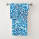 Towel set in a vintage William Morris pattern of stylised willow branches, in shades of cobalt and cerulean blue with dark indigo, on a white background