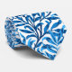 Tie in a vintage William Morris pattern of stylised willow branches, in shades of cobalt and cerulean blue with dark indigo, on a white background