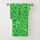 Towel set in a vintage William Morris pattern of stylised willow branches, in medium to dark emerald green, on a pale mint green background