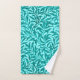 Towel set in a vintage William Morris pattern of stylised willow branches, in shades of turquoise / peacock and dark teal, on a light aqua background