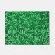 Doormat in a William Morris Art Nouveau textile pattern of stylised willow branches and leaves in shades of light lime green, accented with white, on a dark emerald / pine green background