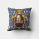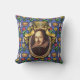 The Bard - The original artwork by ZoeSPEAK on this Throw Pillow features a portrait of the author William Shakespeare. The portrait is in an ornate oval gold frame with ribbons and a crown on top. The blue background wallpaper is decorated with castles, kings' crowns and yellow and red flowers, bringing to mind the romance, tragedy and comedy of his plays and poetry.